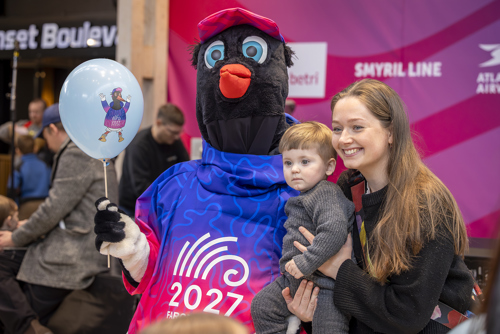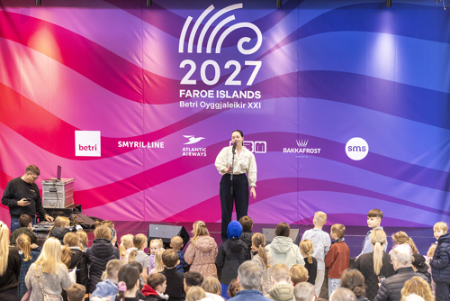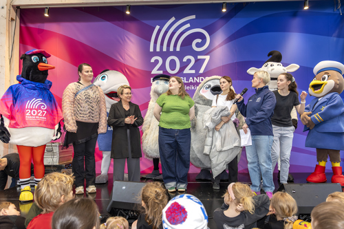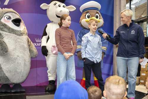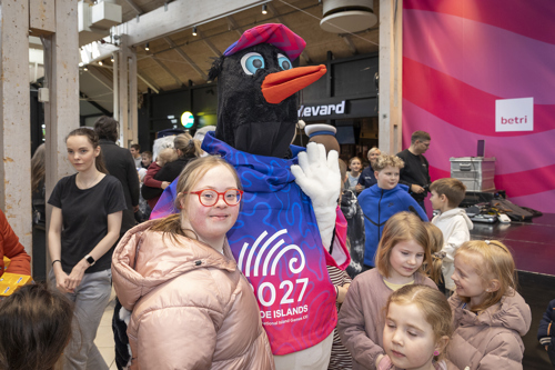 Klipp vísti seg fyri fyrstu ferð alment í dag á torginum í SMS, har nógv fólk var komið saman at taka ímóti - og maskottarnir hjá samstørvunum hjá leikunum.