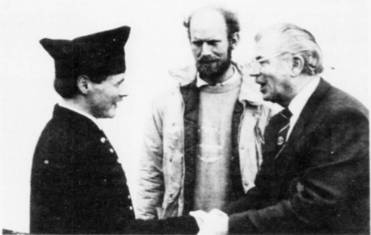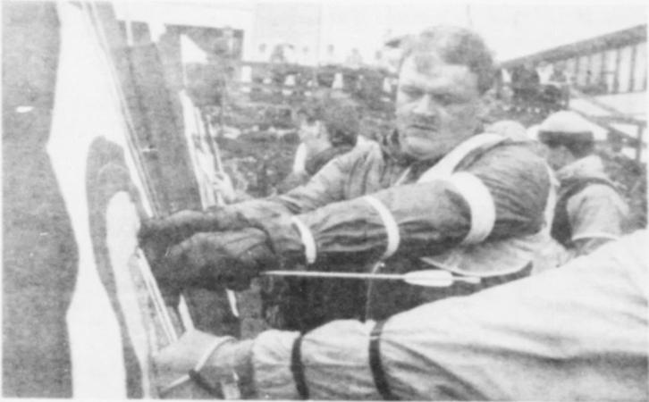 Mynd: Høvuðsfyriskiparin Mogens Egholm meddar til Oyggjaleikirnar í Føroyum í 1989